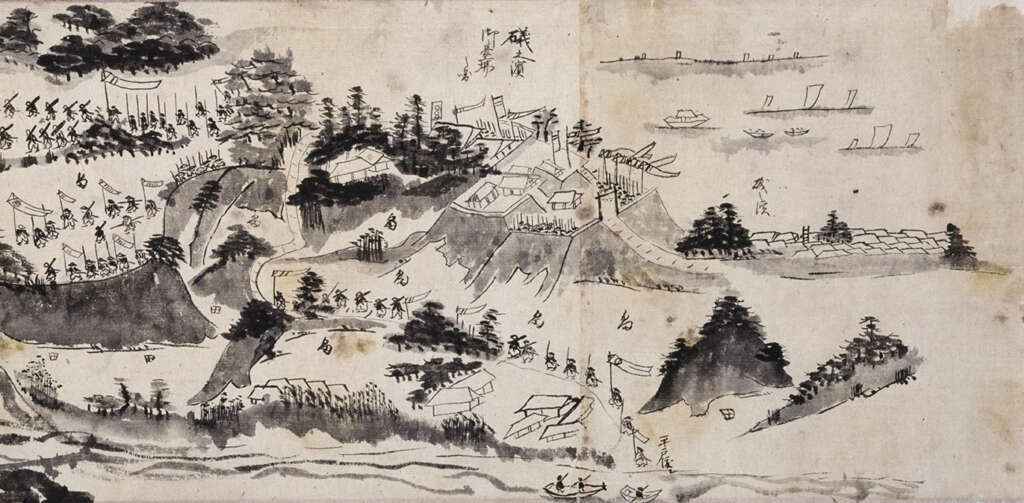 国立歴史民俗博物館所蔵『水戸天狗党絵巻』より磯浜海防陣屋を描いた場面