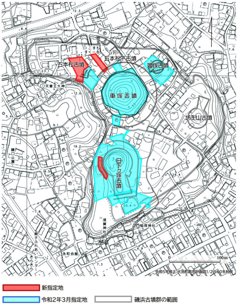 磯浜古墳群保存事業 磯浜古墳群の国史跡追加指定について 令和7年12月19日(金)に開催された、国の文化審議会文化財分科会において、史跡磯浜古墳群(令和2年3月10日指定)の価値が再評価され、範囲が拡大する見込みとなりました。 参考:磯浜古墳群の国指定について ■指定地の範囲は? 現在の青色の25筆に加え、赤色の3筆が追加されます。 ■古墳のどの部分ですか? 日下ヶ塚古墳後円部の裾であったり、車塚古墳や五本松古墳の濠(ほり)が埋まっている部分だったりします。 ■詳しくは 文化庁ホームページをご覧ください。 令和7年12月19日掲載 お問い合せ 生涯学習課 文化財係 代表電話番号 029-267-5111 Mail お問合せフォーム 磯浜古墳群保存事業一覧へ戻る SNSでシェアする