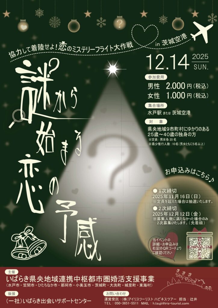【婚活イベント】謎から始まる恋の予感!縁結びバスツアー in 茨城空港 参加者募集!