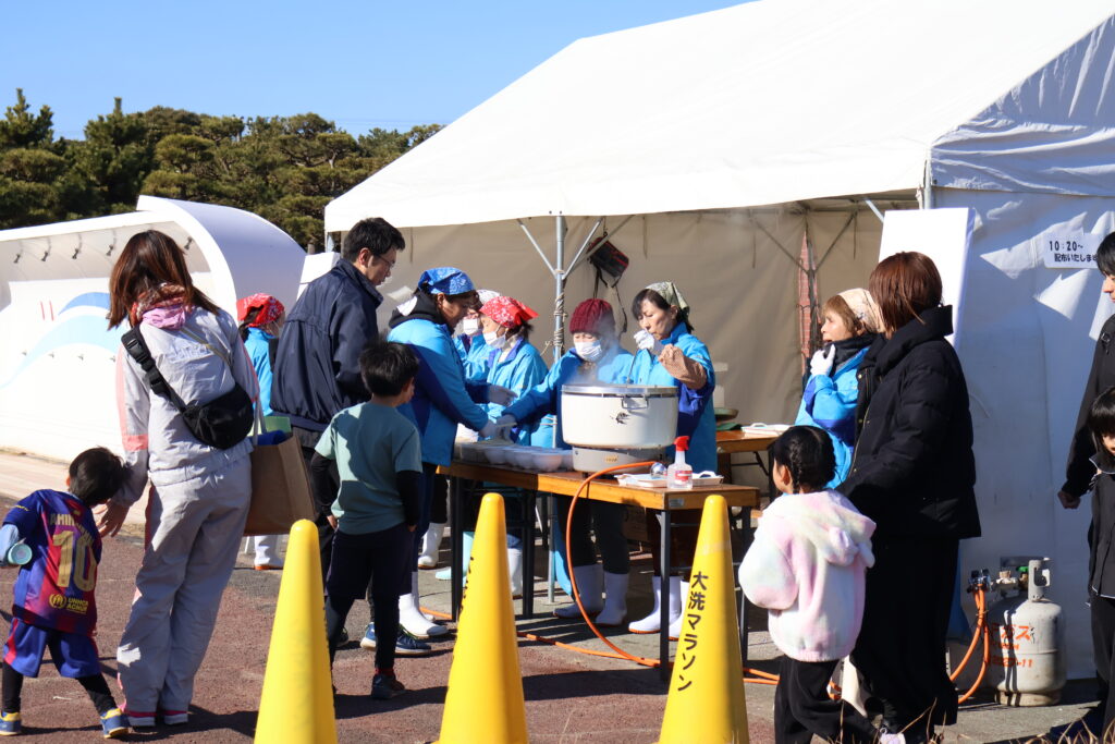 漁協女性部による温かいしらす汁の無料サービスも行われ、走り終えたランナーや応援の皆様をほっこりと包み込みました。
