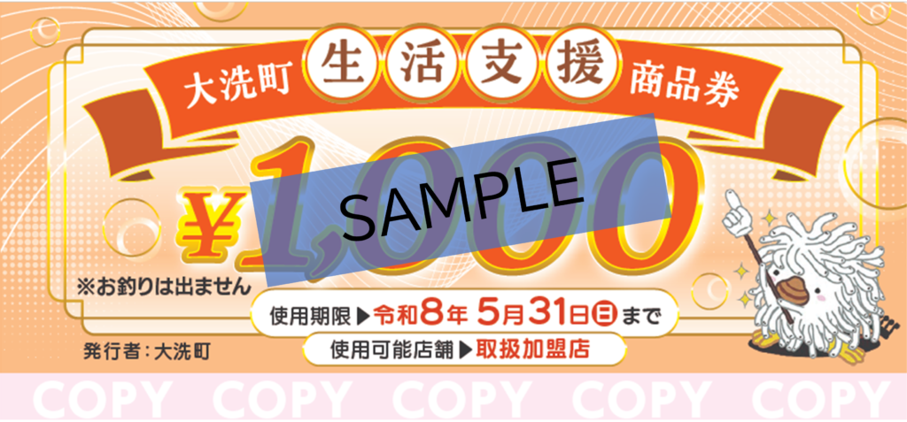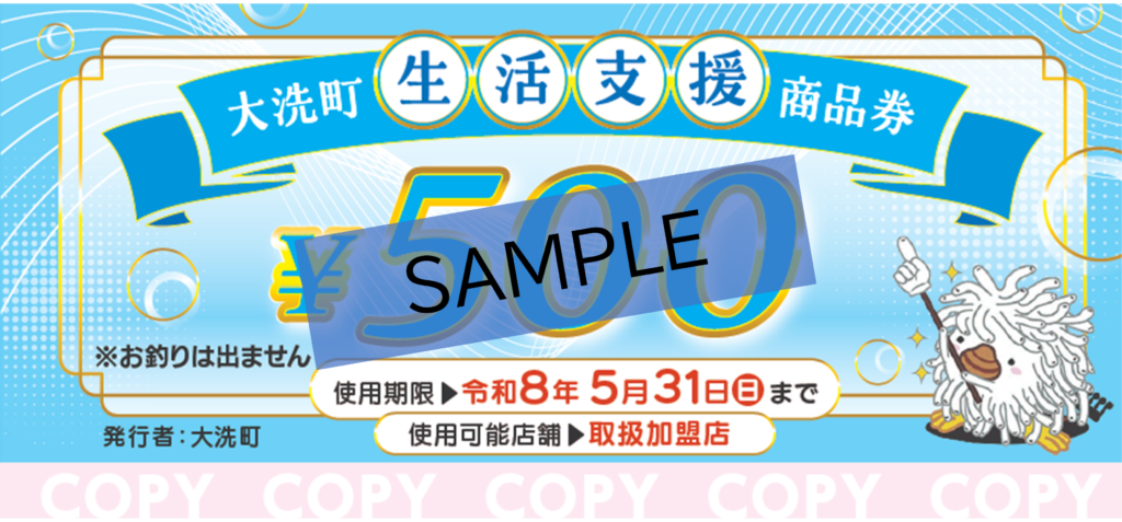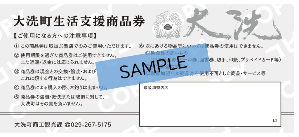 - 使えるお店…大洗町生活支援商品券取扱加盟店(商品券配布事業に登録した店舗)