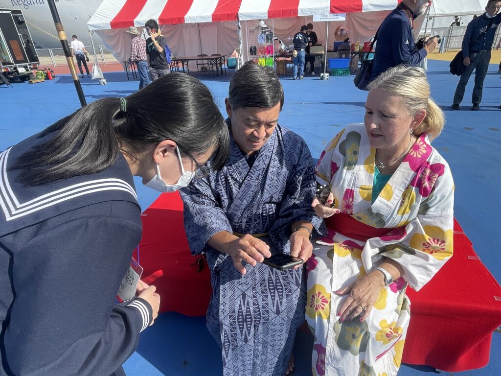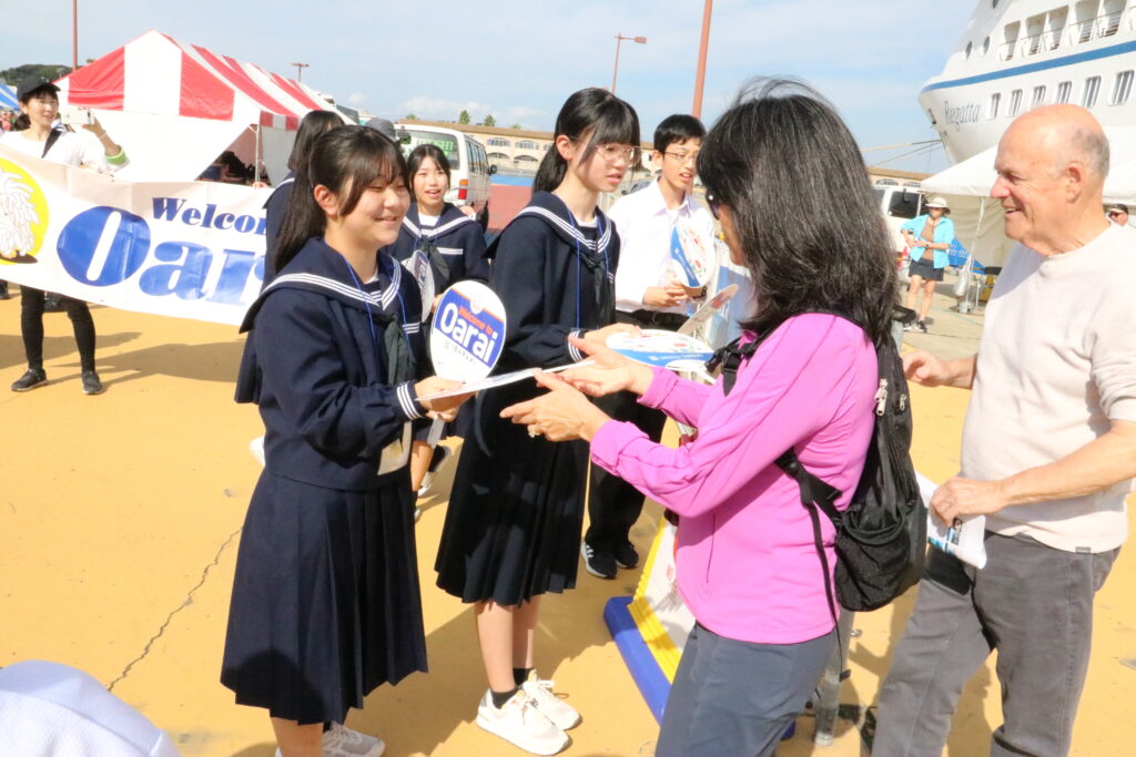 当日は入港を祝して、大洗高校マーチングバンド部「BLUE-HAWKS」による入港歓迎演奏が行われるほか、日本文化体験ブース(着付け・書道)やキッチンカーなども出店予定です。また、大洗町では児童生徒の英語教育に力を入れていることから、その成果を実践する場として、児童生徒ボランティアが乗船客の皆様をおもてなしいたします。