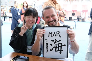 ・外国人のお客様に書道を教えていただきます。