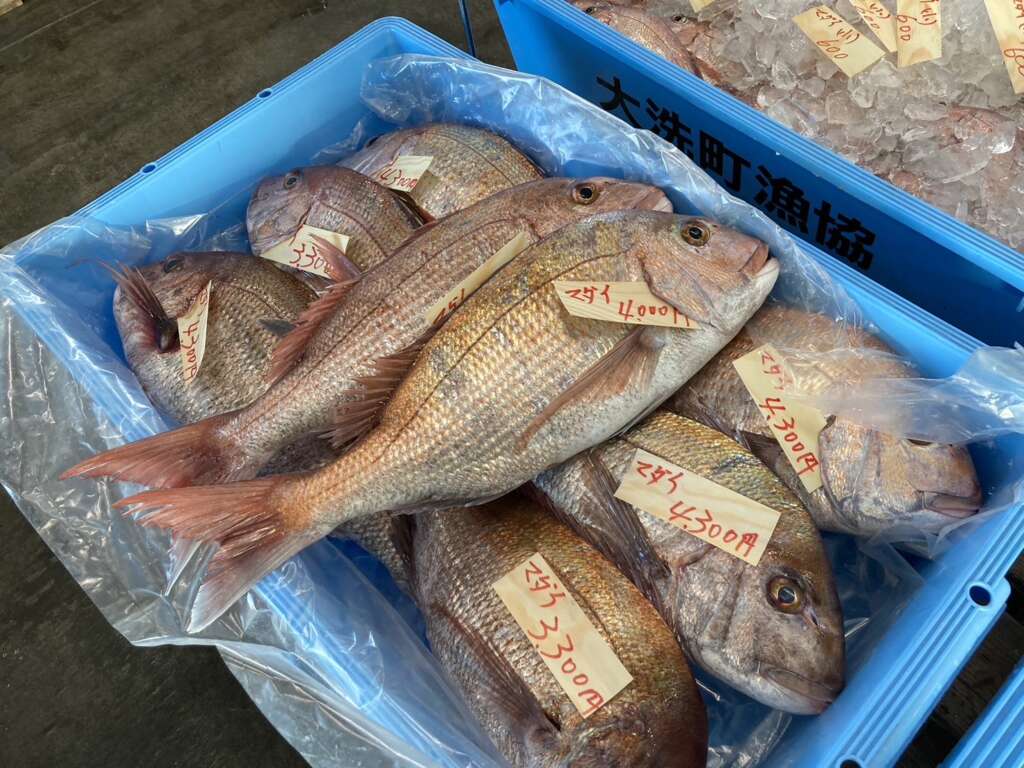 大洗で採れた新鮮な活魚・鮮魚が数多くラインアップされます。ぜひお越しください!