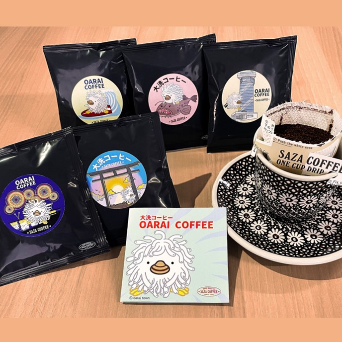 大洗町のイメージキャラクター「アライッペ」のイラストをデザインして、大洗町にちなんだ名所や特産品に合う味作りを行ったコーヒーです。 申請者 (株)サザコーヒーロースター |